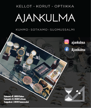 Ajankulma on 1950 -luvulla perustettu yritys, joka tarjoaa optikko-, kultasepän- sekä kellosepän palvelut vuosien kokemuksella.